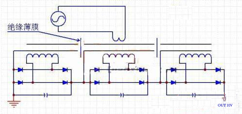 | 變壓器絕緣磁芯多組次級連接的直流高壓電源的技術(shù)原理 | | 信息來源:yzkedq 發(fā)布時間:2017/3/6 10:23:52 | | 高壓電源最主要的技術(shù)特點,就是在于輸出電壓很高。高的輸出電壓對很多方面提出了特別的要求:元器件耐壓的要求、結(jié)構(gòu)設(shè)計的要求、絕緣材料的要求等。與此同時,電路結(jié)構(gòu)上也有異于通常的結(jié)構(gòu)。通常對于輸出10KV以下的電源,可以直接采用傳統(tǒng)的各種拓撲結(jié)構(gòu)。但是對于電壓更高的電源,就要對電路結(jié)構(gòu)作一些修改,以滿足更高電壓的輸出。由于變壓器初級部分的功率器件的耐壓限制,一般驅(qū)動部分依然是傳統(tǒng)的開關(guān)電源拓撲,對電路結(jié)構(gòu)的修改,主要是集中在變壓器以及后面的整流電路上。下面主要對這兩部分進行討論。 這種方式的電路示意圖如圖3所示。特點是,磁芯是由多段組合而成,每段磁芯之間都用絕緣性能很好的薄膜進行絕緣。每段磁芯都有一個次級繞組。優(yōu)點是:適合較大功率的輸出。變壓器數(shù)量少,只需要一副磁芯。每段次級繞組與磁芯的電壓差小,次級繞組對磁芯的絕緣容易處理。缺點是:磁芯是分段的,結(jié)構(gòu)復(fù)雜。磁芯有氣隙,分段越多,等效氣隙越大,磁芯固定困難。 隨著科技的進步,高壓電源在越來越多的領(lǐng)域得到應(yīng)用。“高壓電源”這個名詞是依據(jù)其輸出電壓來定義的。直流高壓電源所涉及的領(lǐng)域其實非常寬廣,大到電力系統(tǒng)的直流高壓輸變電系統(tǒng),小到家用的電蚊拍,都可以算是這個領(lǐng)域里的東西。在這里我主要想說說的是屬于電子電源領(lǐng)域的高壓電源。這個領(lǐng)域的高壓電源,主要的應(yīng)用有:醫(yī)療安檢無損檢測領(lǐng)域應(yīng)用的X光系統(tǒng)、一些粒子加速器系統(tǒng)、工業(yè)煙氣除塵、耐壓測試儀表、靜電裝置、氣體激光器等。